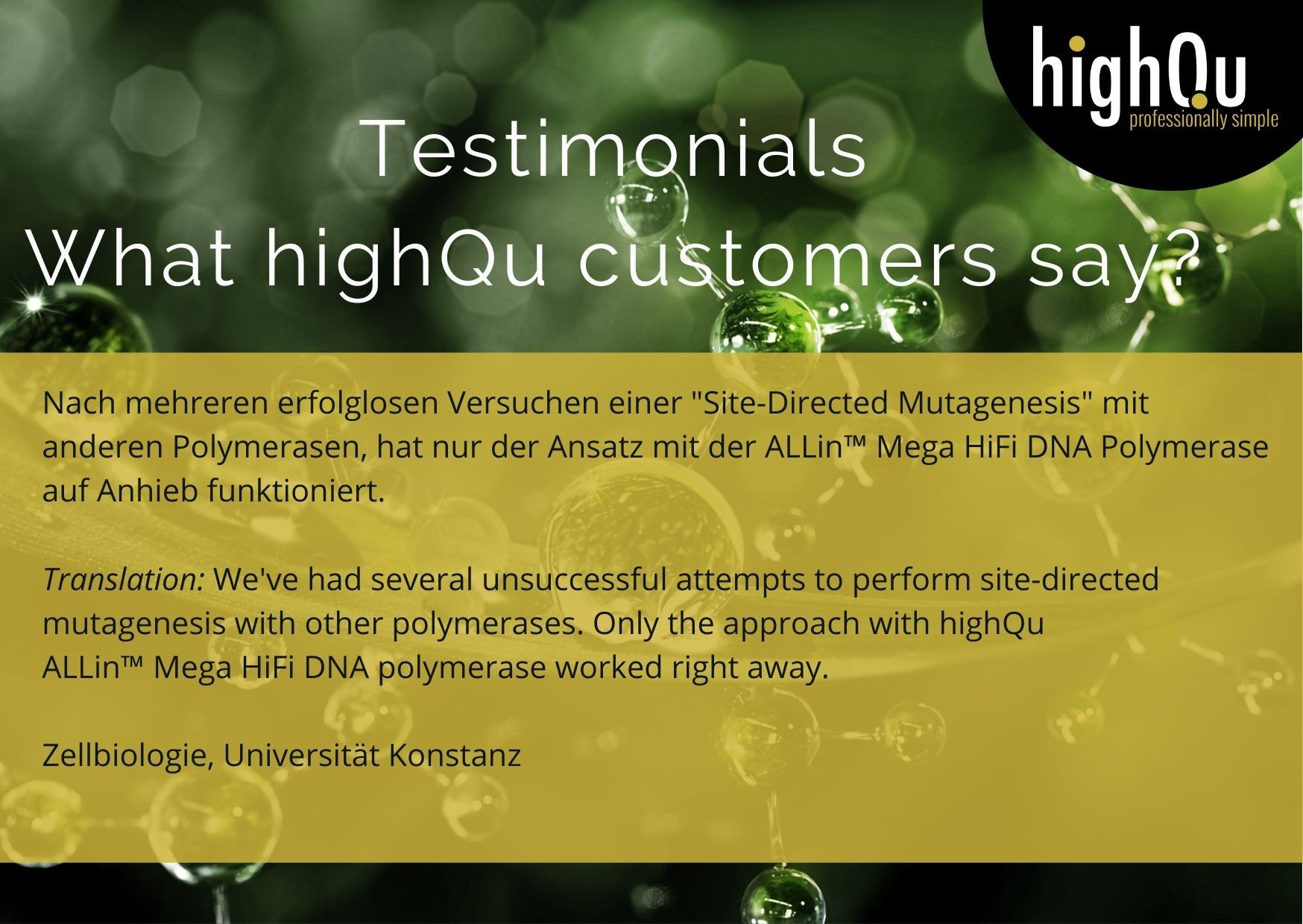 与 Taq 相比,highQu ALLin Mega HS HiFi DNA 聚合酶的 PCR 错误率要低得多,保真度高 100。与 Mega HiFi 相比,这种热启动酶版本可实现更高的 PCR 灵敏度和特异性以及室温反应设置,是多重反应的绝佳选择。ALLin Mega HS HiFi DNA 聚合酶经过精心设计,速度更快,从复杂的富含 GC 的模板中产生高达 20 kb 的长 PCR 产物的产量。因此,ALLin Mega HS HiFi DNA 聚合酶是需要更高保真度的更长和复杂的 PCR 应用的优良选择。它是克隆和包括 NGS 在内的所有类型测序应用的首选酶。生成的平端PCR产物适用于连接到钝性载体中。