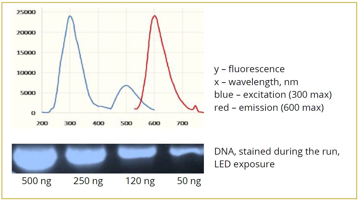 · 更方便的实验方案 – 该染料既可以在凝胶电泳期间使用,也可以用作电泳后染色。
