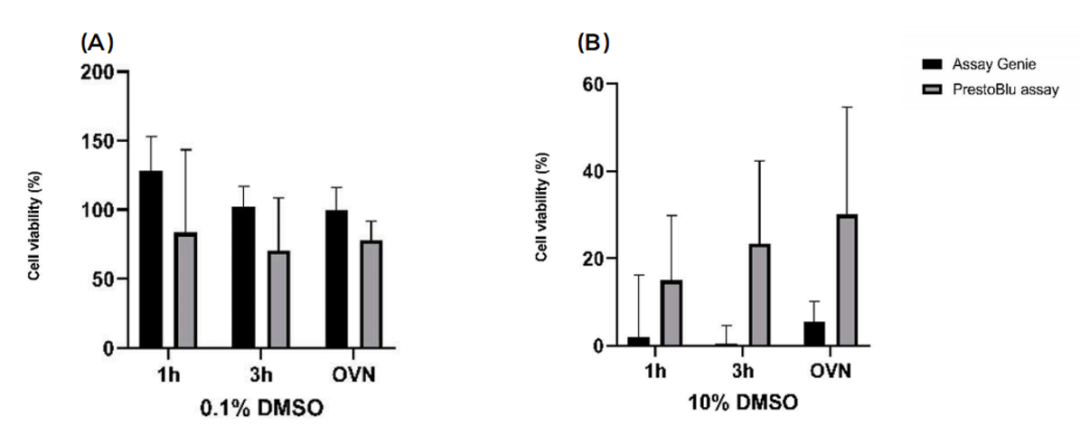 结果显示,Assaygenie细胞活力测定试剂在检测细胞活力上更加灵敏真实。