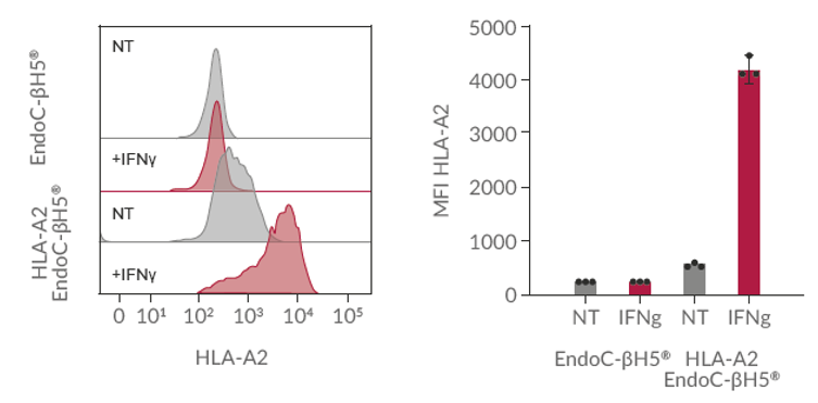 Fig:HLA-A2表达的流式细胞术结果(左)和平均荧光强度(MFI)(右)。(NT:未经治疗)